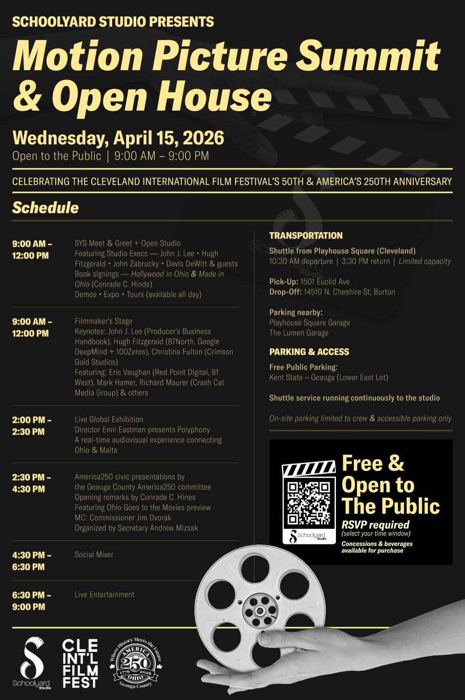 Located in Burton, Ohio, Schoolyard Studio is a full-service film, television, and commercial production space in Northeast Ohio featuring large soundstages, specialty sets, production offices, and creative services. Designed for versatility, the facility transforms ideas into fully realized productions giving creators the space, tools, and support to bring any vision to screen.